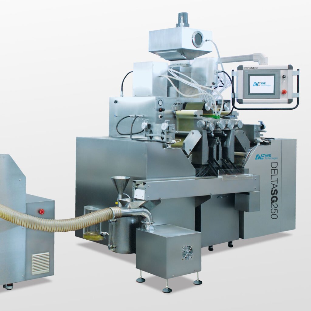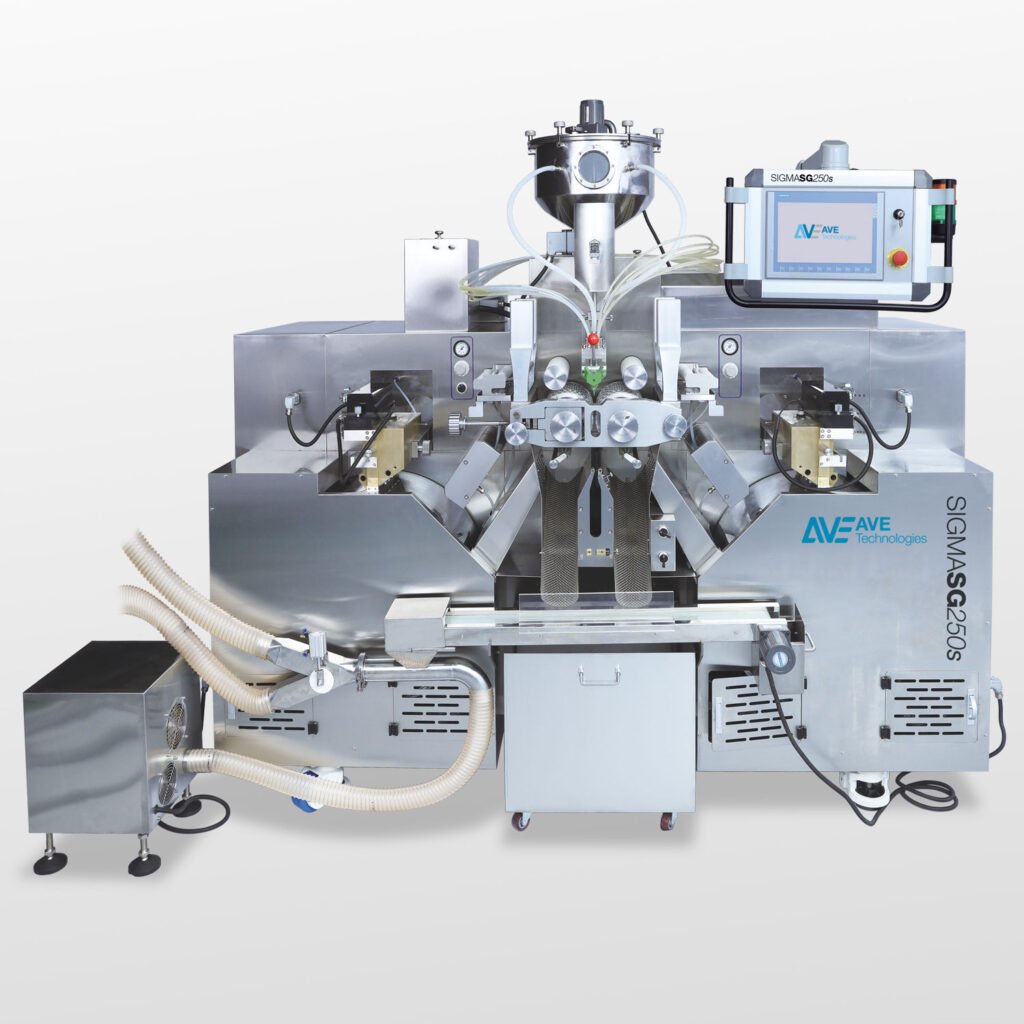 The SIGMASG250S softgel production system from AVE Technologies is ideal for varying output requirements. Ranging from smaller start-up operators to large scale production needing the world’s fastest softgel encapsulator. With speeds up to 8 RPM and production volumes up to 168,480 softgels per hour @ 8 Oval at 6 RPM base on oil. Also suitable for use with standard animal gelatin as well as popular Vgel plant based gelatin softgels.